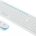 Состав: клавиатура + мышь • Назначение: настольный компьютер • Подключение: беспроводное (радиоканал) • Конструкция: стандартная • Цвет: белый, голубой • Беспроводной адаптер: USB • Дополнительные клавиши: 3 • Тип мыши: мышь • Технология распознавания движения: оптическая • Разрешение сенсора: 1000 dpi, 1500 dpi, 2000 dpi • Колесо прокрутки: есть • Количество кнопок мыши: 4 • Дизайн мыши: симметричный • Клавиатура: 2 x AAA