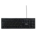Состав: клавиатура • Назначение: настольный компьютер • Подключение: проводное (USB) • Конструкция: стандартная • Цвет: черный • Количество клавиш: 104 • Кабели: клавиатура - • Размеры клавиатуры: 439x139x24 мм • Вес клавиатуры: 385 г
