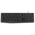 Состав: клавиатура + мышь • Назначение: настольный компьютер • Подключение: проводное (USB) • Конструкция: стандартная • Цвет: черный • Количество клавиш: 104 • Защита клавиатуры: от воды • Тип мыши: мышь • Технология распознавания движения: оптическая • Разрешение сенсора: 800 dpi • Колесо прокрутки: есть • Количество кнопок мыши: 2 • Дизайн мыши: симметричный • Размеры клавиатуры: 456x162x26 мм