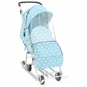 Характеристики: — плоские полозья 30 мм — усиленный складной каркас — складной высокий двухсекционный козырек с дополнительной дугой на спинке позволяет чувствовать себя комфортно малышу в шапке с помпоном — трехточечный ремень безопасности — съемный прозрачный тент-дождевик для защиты от ветра и осадков — ступенчатая регулировка спинки, три положения: сидя, полулежа, лежа — широкое посадочное место — чехол для ног на молнии с двух сторон — светоотражающий кант — удобные колеса на полозьях для