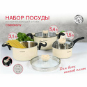 Состав наборакастрюля с крышкой D 24 см, объемом 5.4 л; кастрюля с крышкой D 20 см, объемом 3.1 л; ковш с крышкой D 16 см, объемом 1.5 л