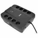 Интерактивный, 650 ВА / 390 Вт, количество выходных разъемов: 8 (4 с питанием от батареи), USB, защита локальной сети, защита телефонной линии