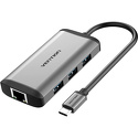 Производитель: Vention Модель: CNCHB - Тип: USB-хаб - Подключение хаба: USB A - Разъемы: USB A 3 шт, USB C 1 шт, HDMI, LAN LAN (RJ-45) Описание